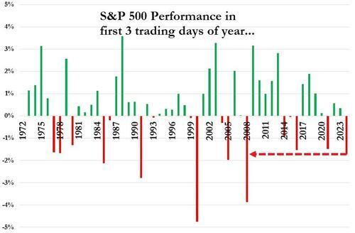 从历史开年行情的对比看,随着过去三个交易日连续下跌,标普500指数已经创下了2008年以来最糟糕的开年头三天表现。