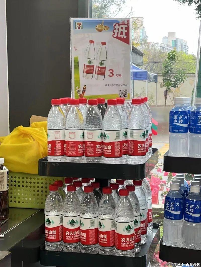 在部分门店走访中,南都湾财社记者发现农夫山泉的水、饮料等系列产品依然摆放在货架上,价格方面,农夫山泉相关产品售价与往常一样,没有出现明显的波动。其中,南都湾财社记者在部分711便利店内发现,农夫山泉的矿泉水、茶饮等产品均有不同程度的促销活动。