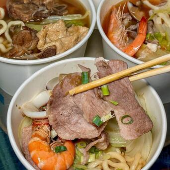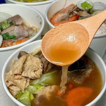 朋友带我们去吃了家面馆,店开在老社区里面,真的深藏不露[期待]😍 主打汤面和粥品~汤面用的鲜煮蔬菜大骨汤打底,真材实料,汤头非常好喝,配料的份量也给得很有诚意! ▫️肉骨茶面 25元 ▫番茄海鲜面 25元 ▫南瓜粥 8元 肉骨茶面全场最佳,排骨肉质鲜嫩不干柴,汤头浓郁让人一口接一口喝光~ 豆皮、胡萝卜、卷心菜等蔬菜加入汤中,更添鲜甜👏 我原先以为南瓜粥就是南瓜熬粥,没想到里面还有干贝和银鱼,咸口的吃着不腻~